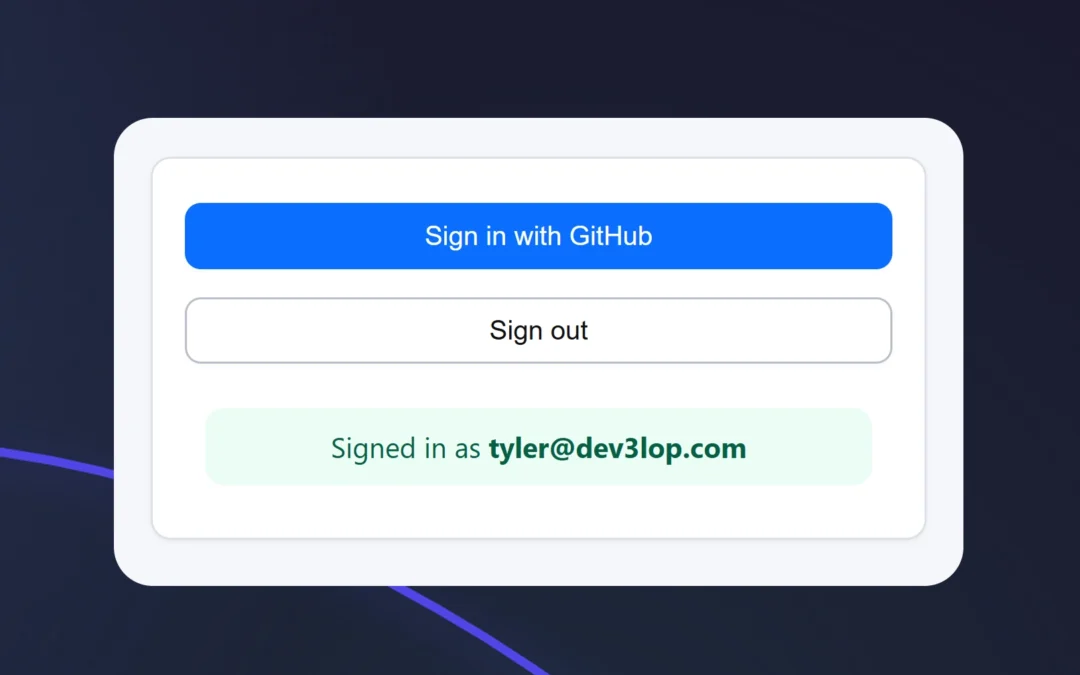 - Flow: Browser requests GitHub OAuth → user consents at GitHub → GitHub redirects back with a code → the backend exchanges code for tokens → identity is read (e.g., user id, email) → app creates/updates